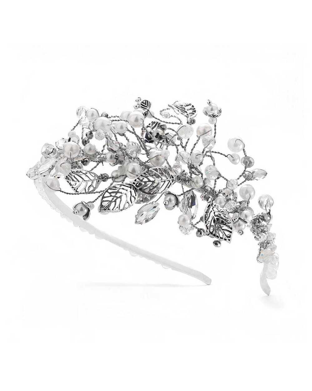 Взгляд из-под ресниц, полуулыбка, случайное касание… В асимметрии ободка "КЛАСТРО" лежит идея природной женственности. Изящные сплетения серебристых веточек и листьев создают кутюрный и невероятно утонченный образ.