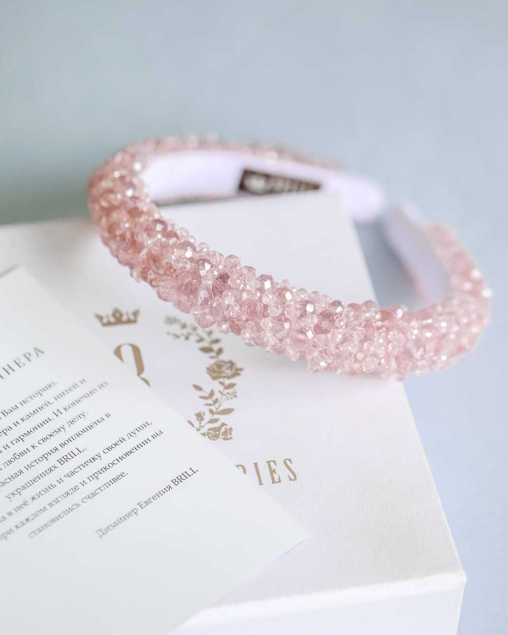 Ободки BRILL изготавливаются на прочной каучуковой основе. Ее можно сгибать и разгибать, чтобы ободок сидел максимально комфортно как на взрослой, так и на детской головке. При индивидуальном создании вес и размеры могут незначительно изменяться.