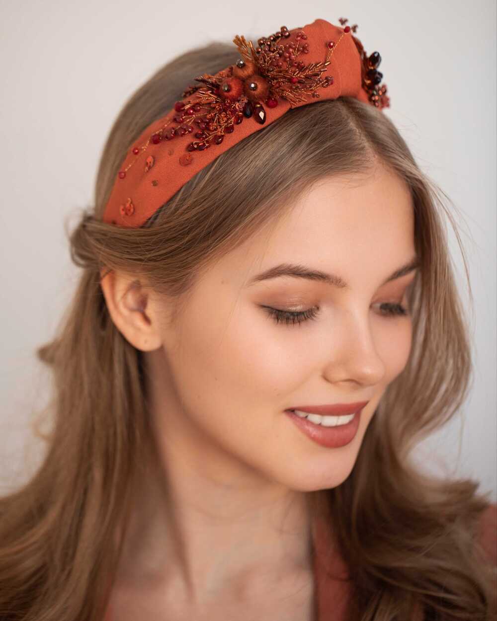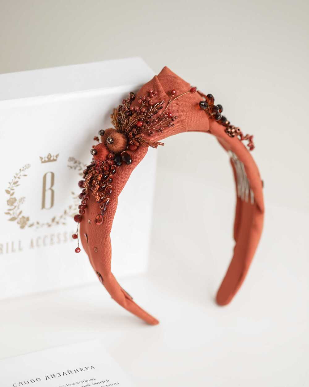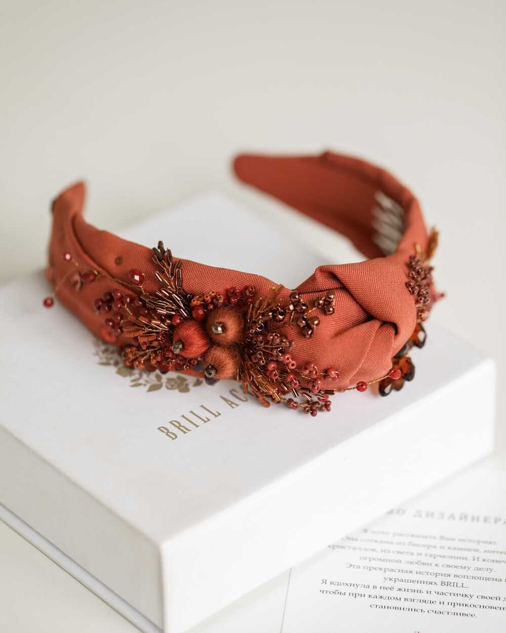 Данный ободок BRILL изготавливается на прочной каучуковой основе. Ее можно слегка сгибать и разгибать, чтобы ободок сидел максимально комфортно как на взрослой, так и на детской головке. При индивидуальном создании вес и размеры могут незначительно изменяться.
