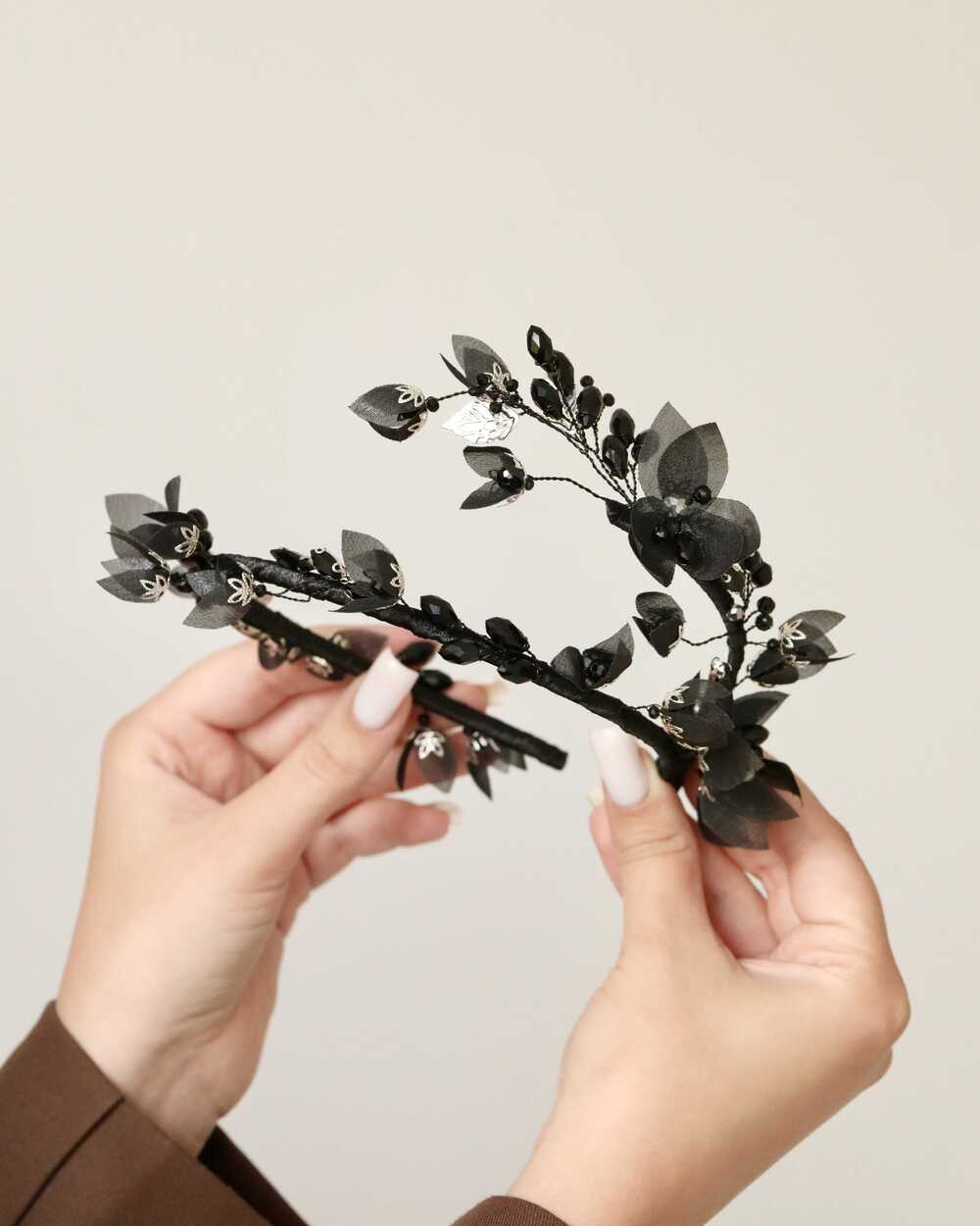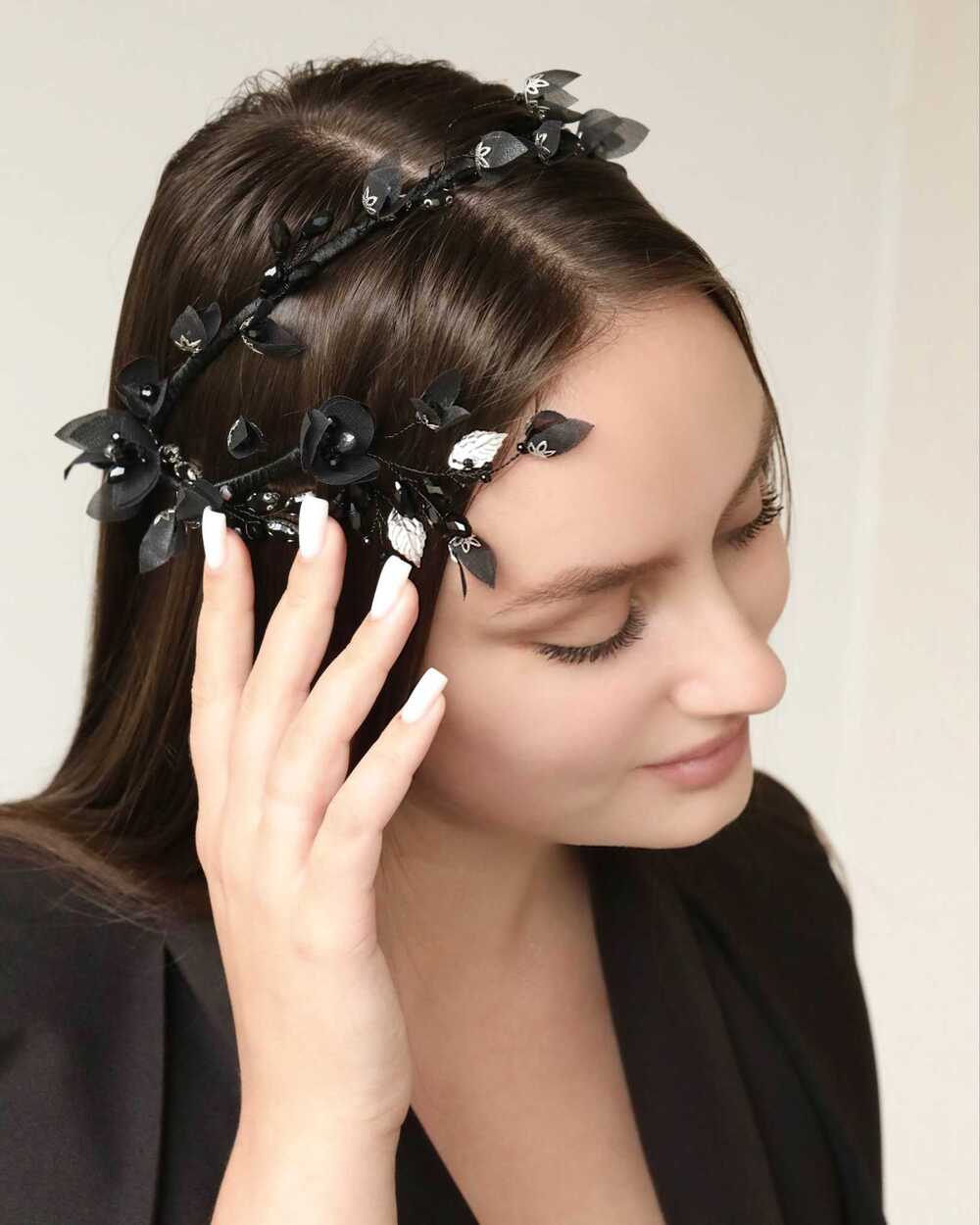 Ободки BRILL изготавливаются на прочной металлической основе. Ее можно сгибать и разгибать, чтобы ободок сидел максимально комфортно как на взрослой, так и на детской головке. При индивидуальном создании вес и размеры могут незначительно изменяться.
