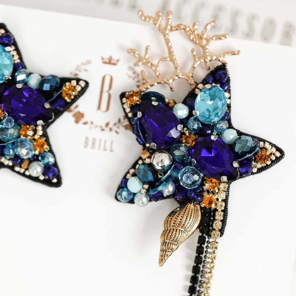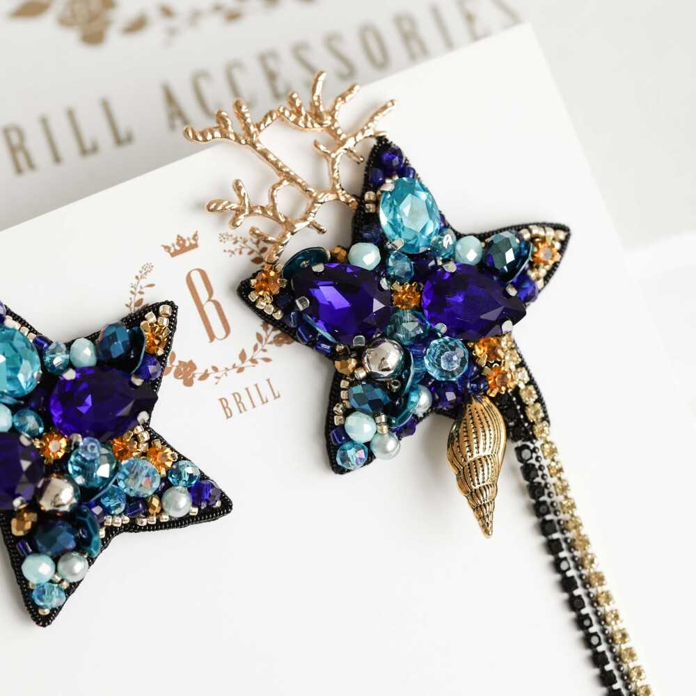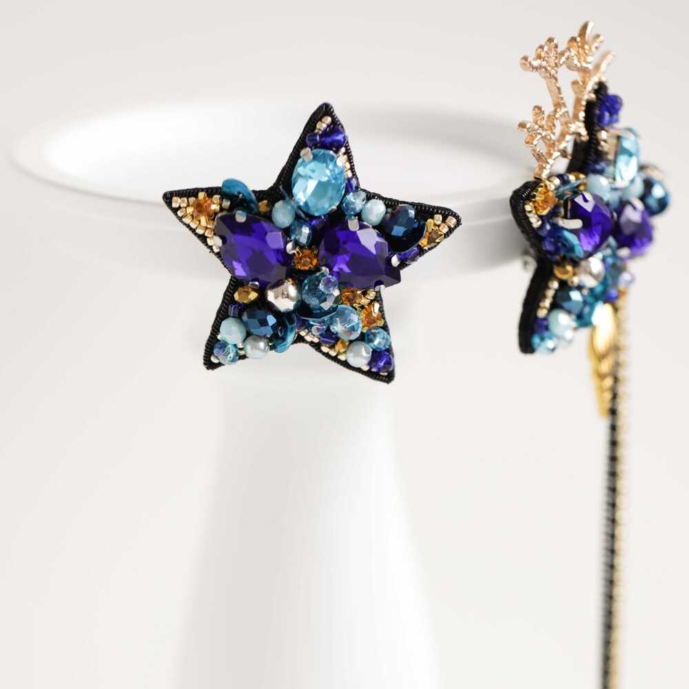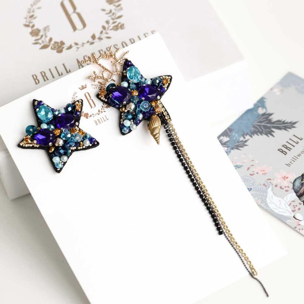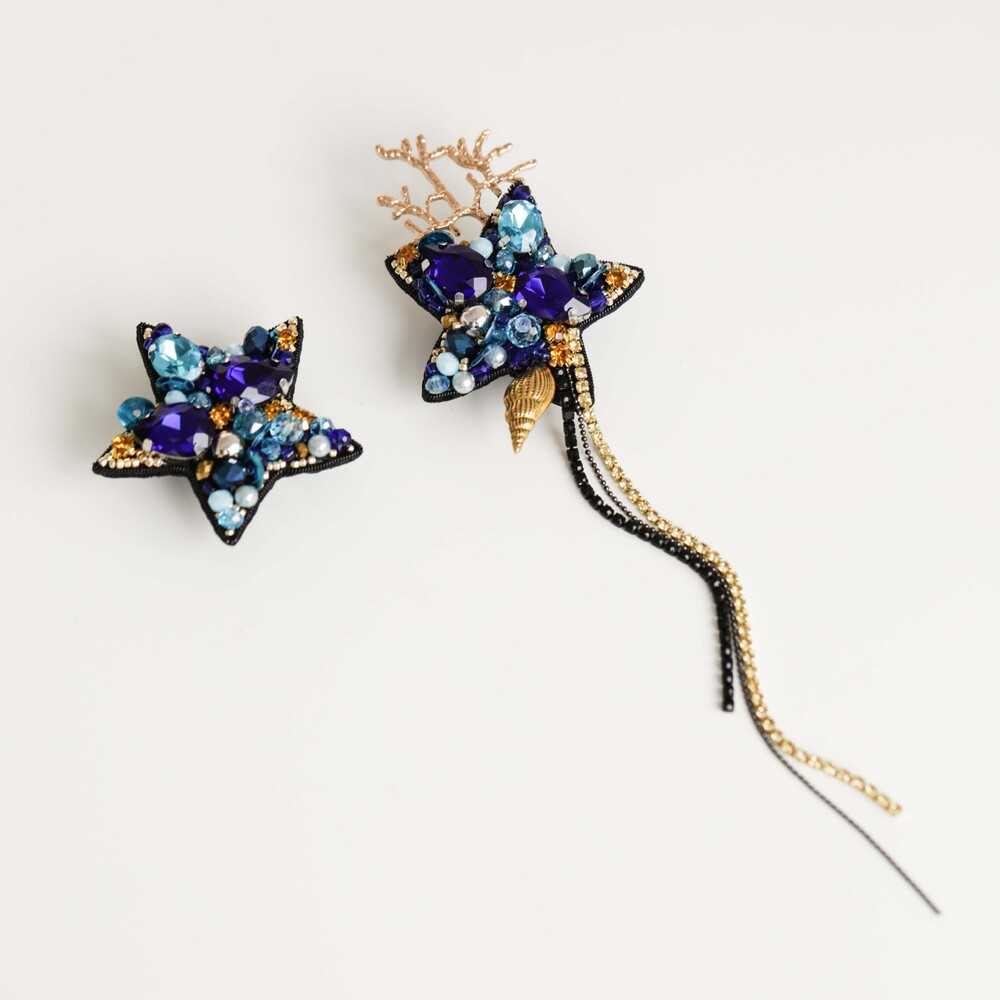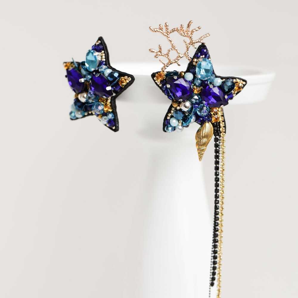 Ассиметричные серьги «ОРАКУЛ» - морская классика. Глубокий синий, аквамариновые переливы и сияние золота – блеск «Оракула» предскажет твоему окружению, что за легкостью характера скрываются бездонные глубины.