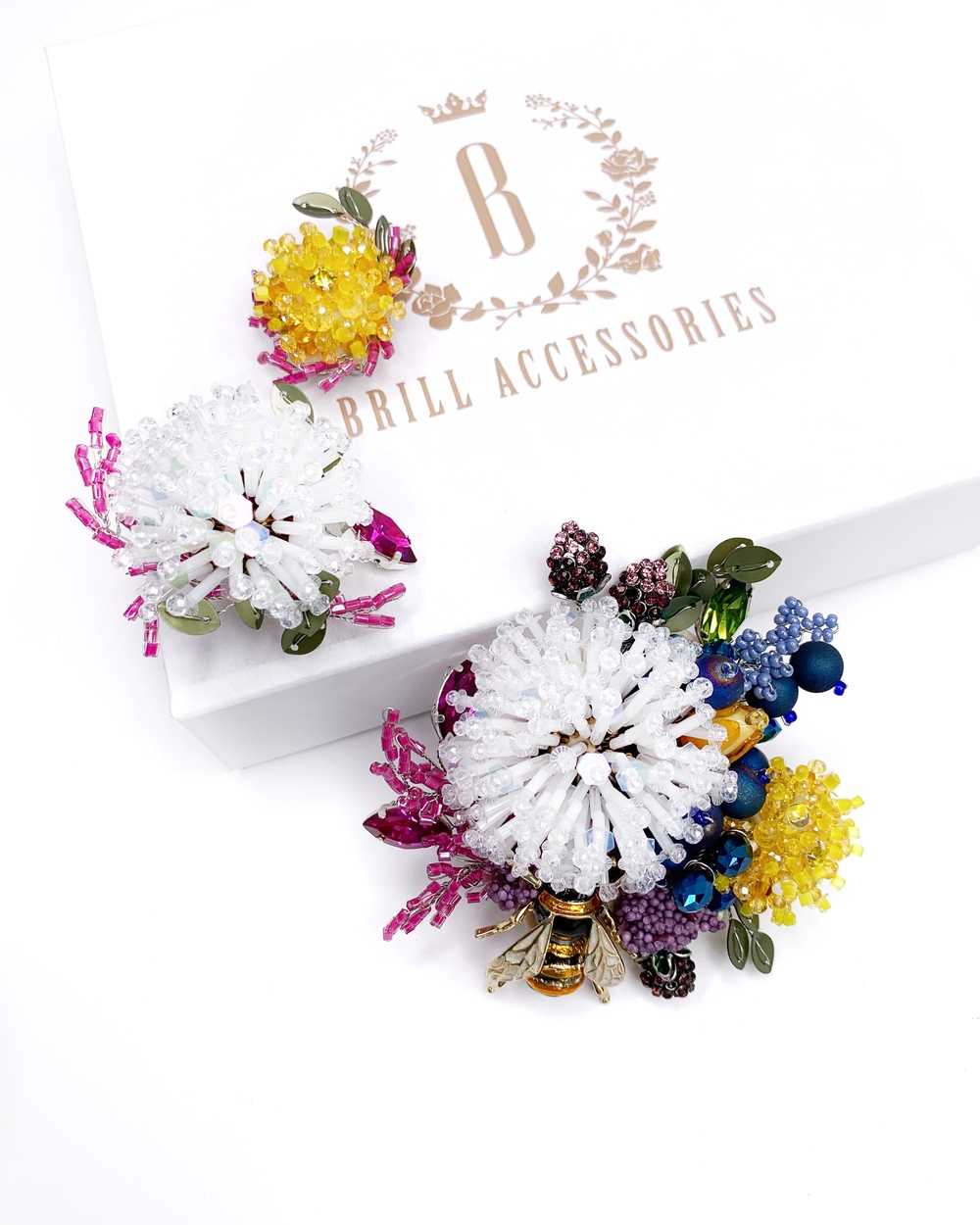 В комплект можно приобрести две прелестные броши, которые можно носить по-разному – вместе или по отдельности.Сет классно и игриво смотрится со строгими костюмами, а уж к сарафанам и прочей сезонной атрибутике его сама жара прописала!