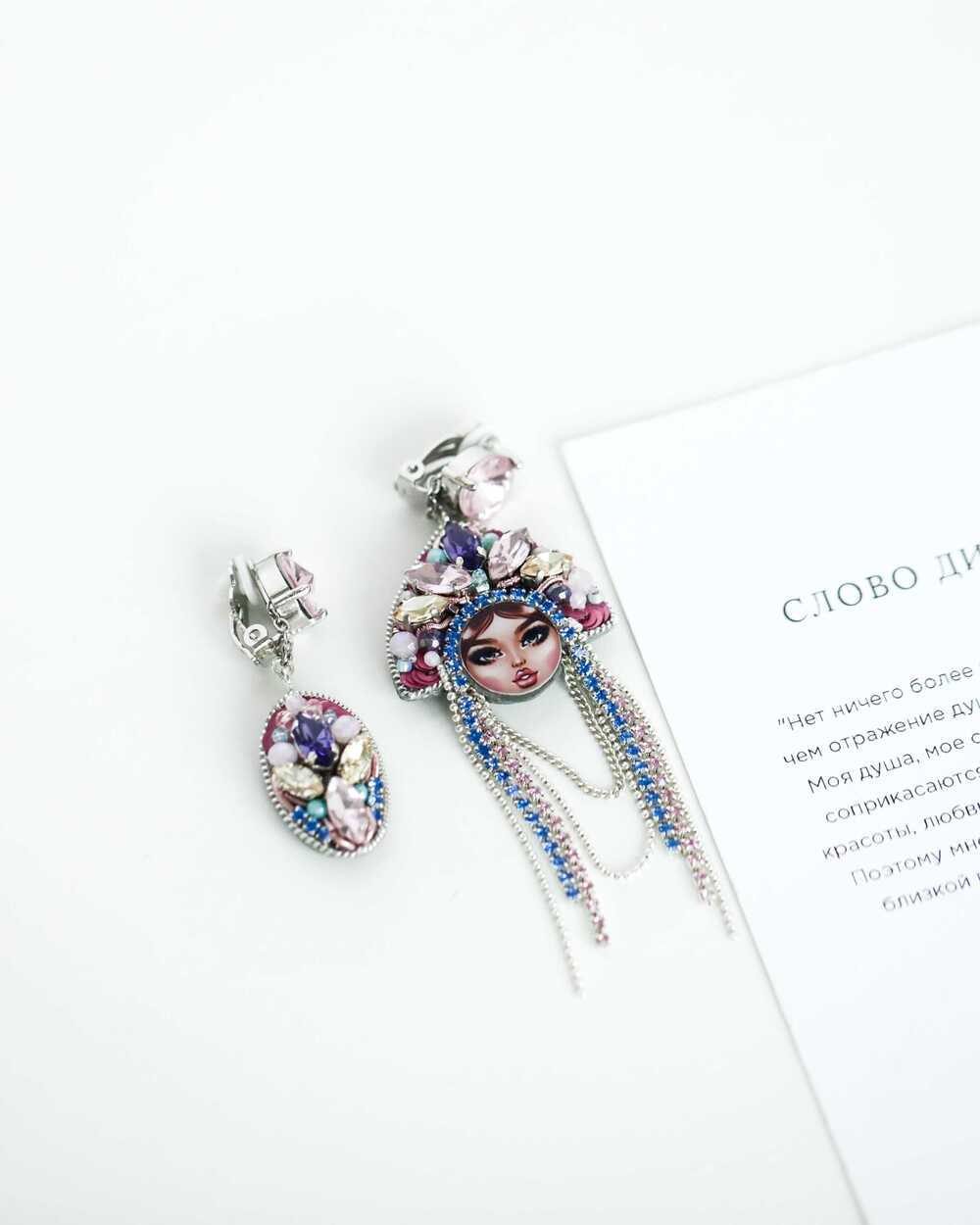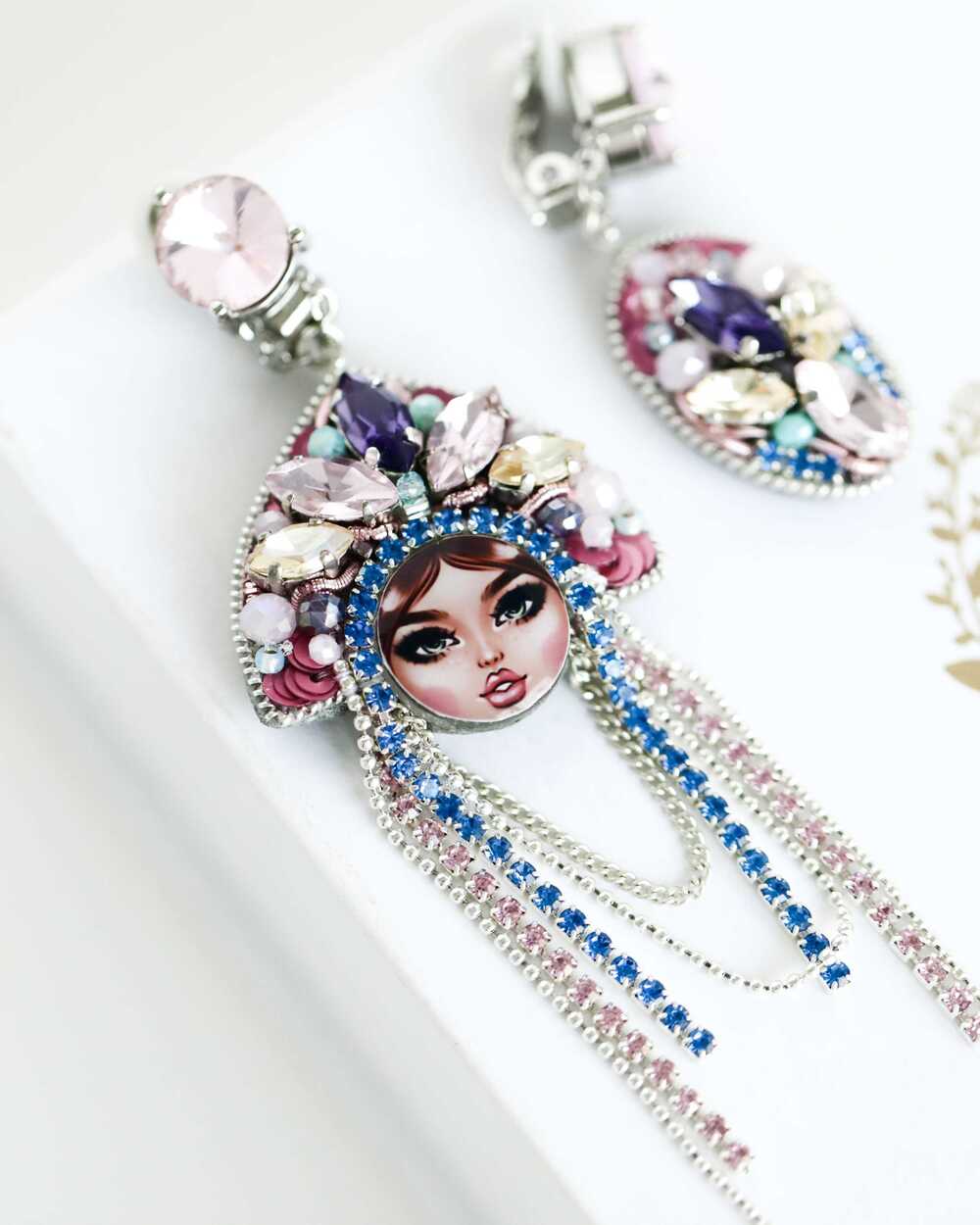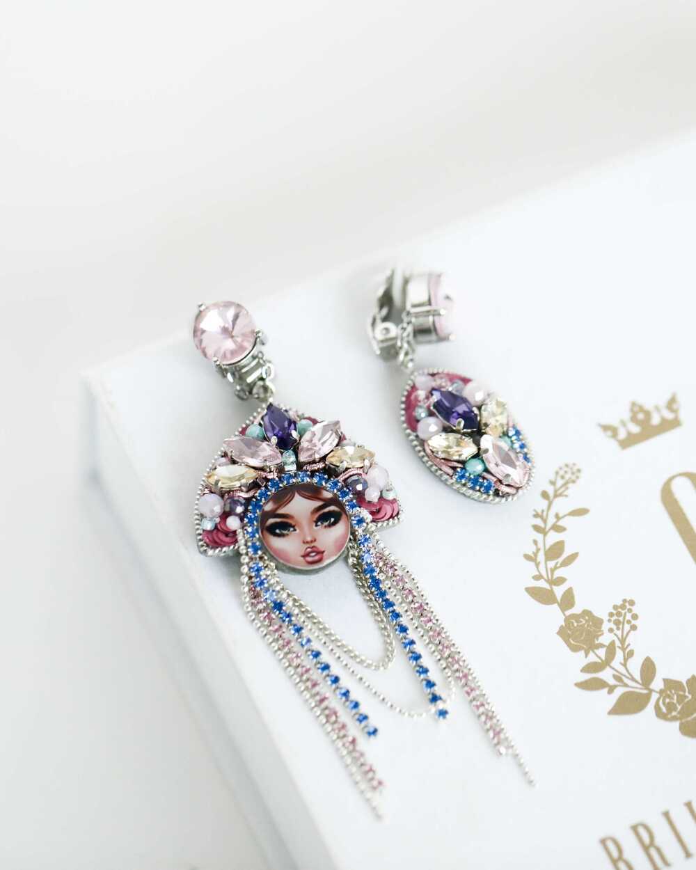 Серьги "ЦАРЕВНЫ" - раскроют вашу индивидуальность. Помимо основного тона, который вы можете выбрать из огромной палитры цветов индивидуально под свой образ, вы можете выбрать лицо своей красотки! Дерзкая брюнетка или нежная блондинка. У каждой из них свой характер, как и у нас всех! Попробуйте взглянуть на мир глазами ЦАРЕВНЫ