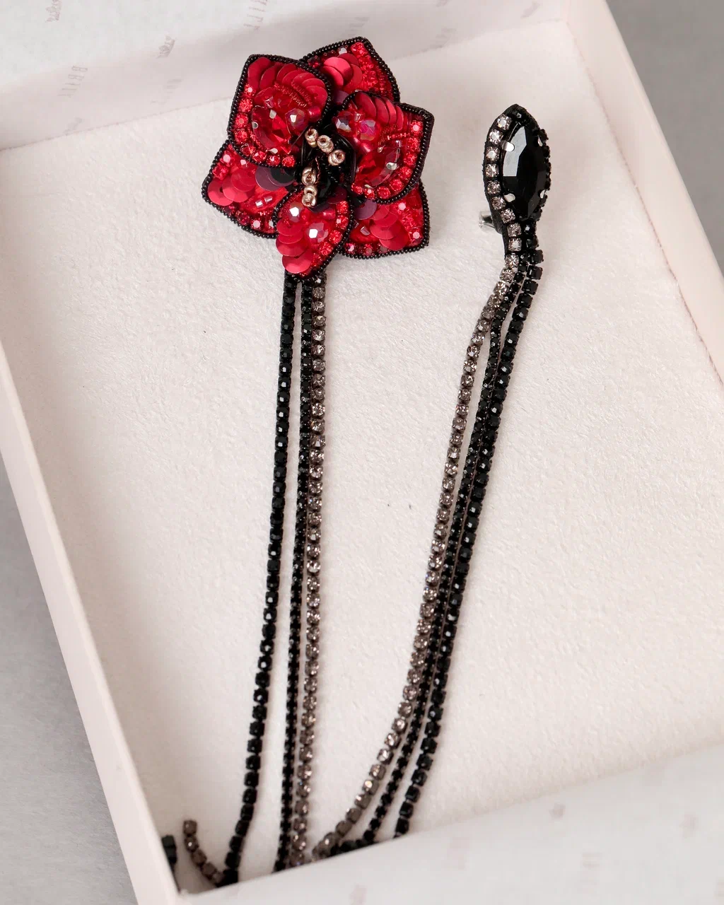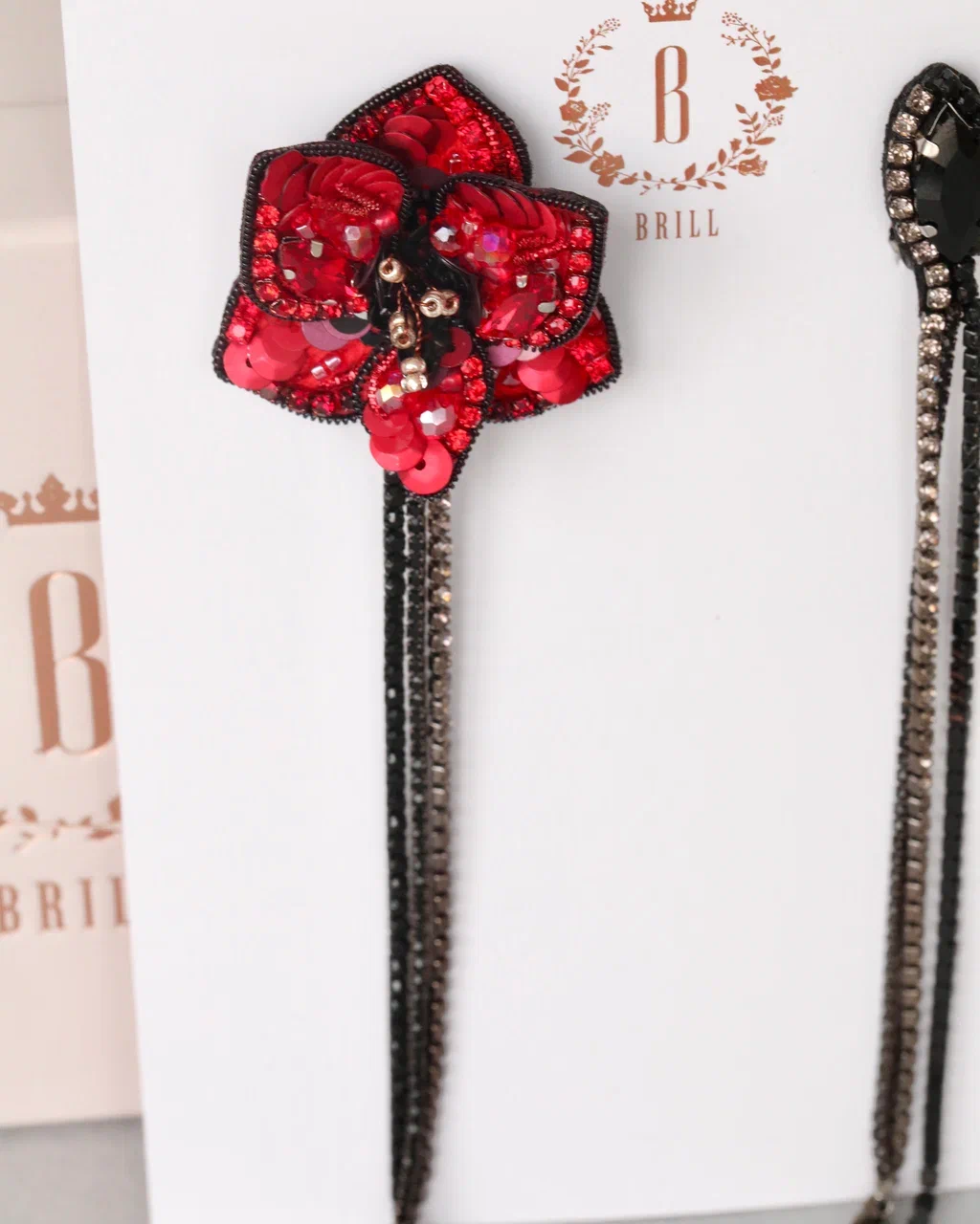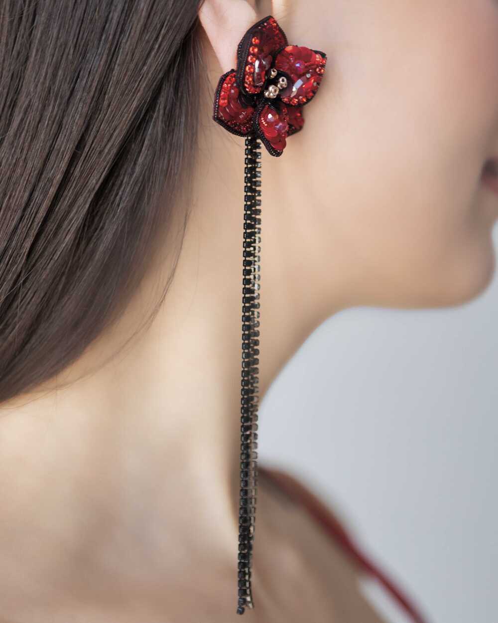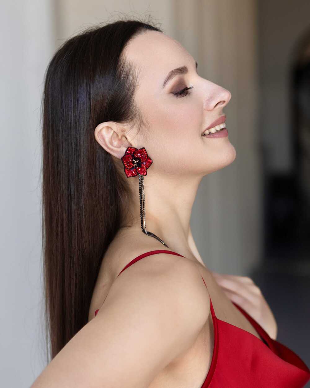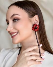 Каждый лепесток серьги тщательно проработан: лепестки словно оживают благодаря изящной форме и переходам оттенков – от глубокого бордового до ярко красного, с лёгкими акцентами золотистого сияния в середине.