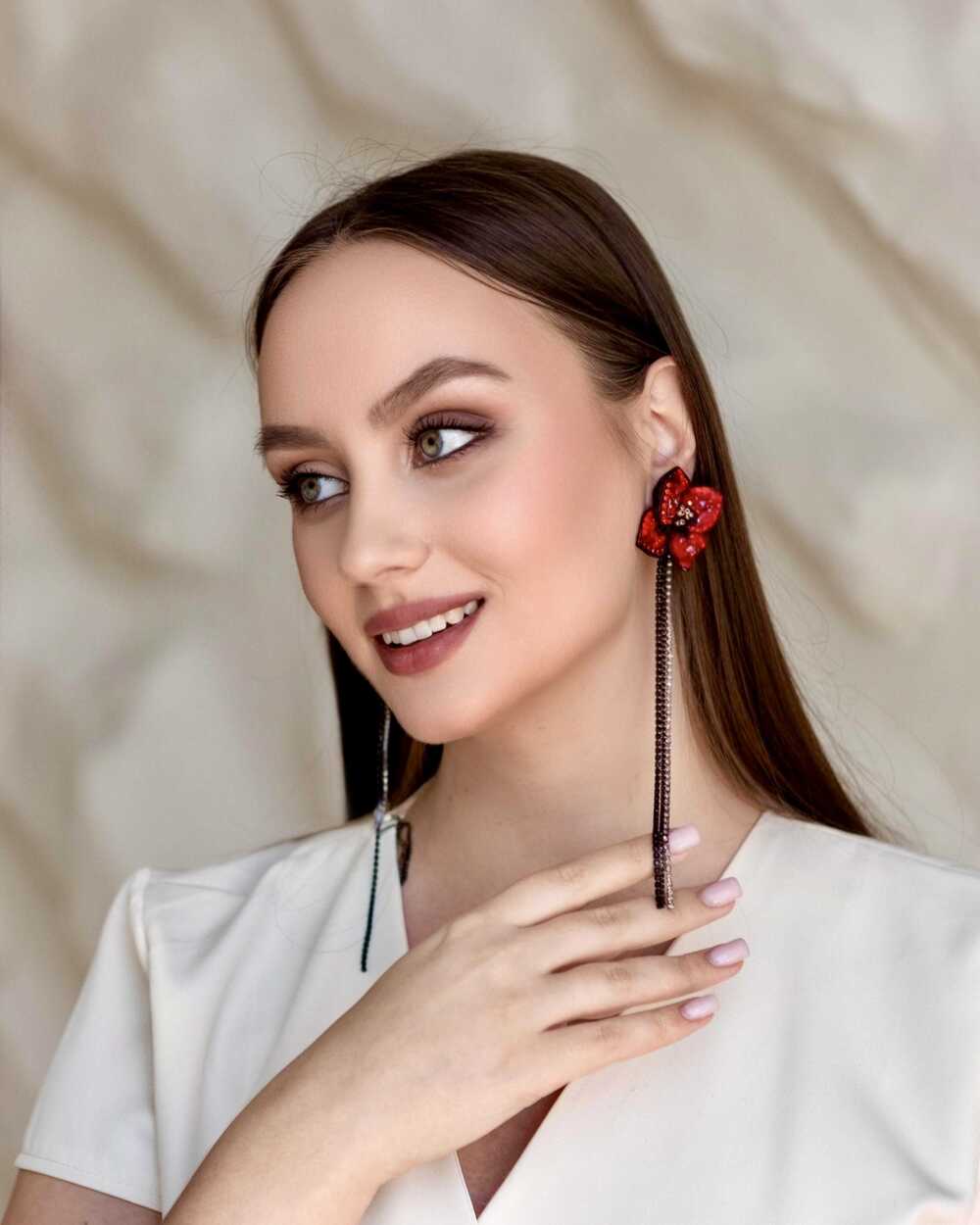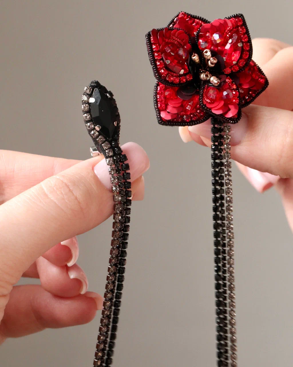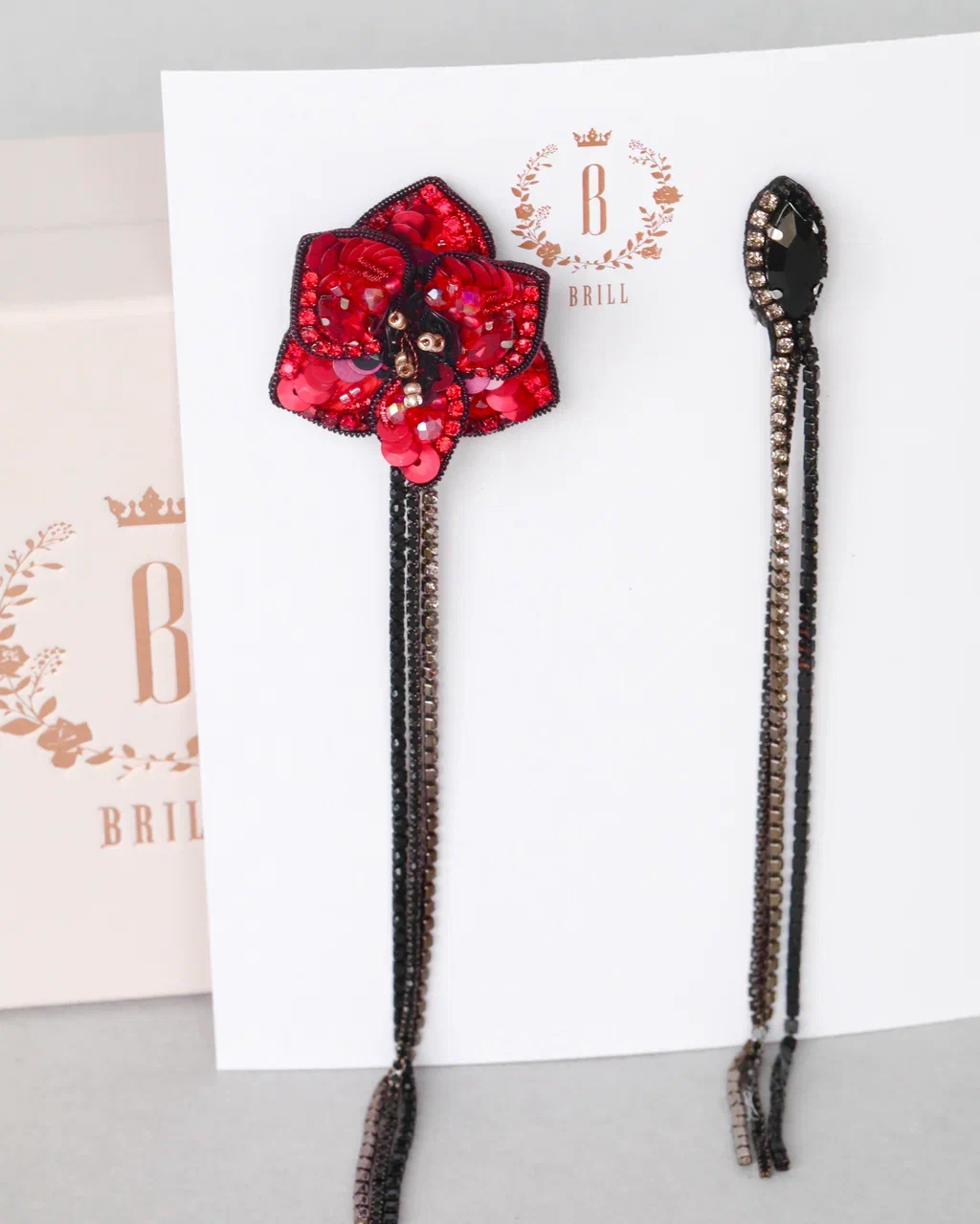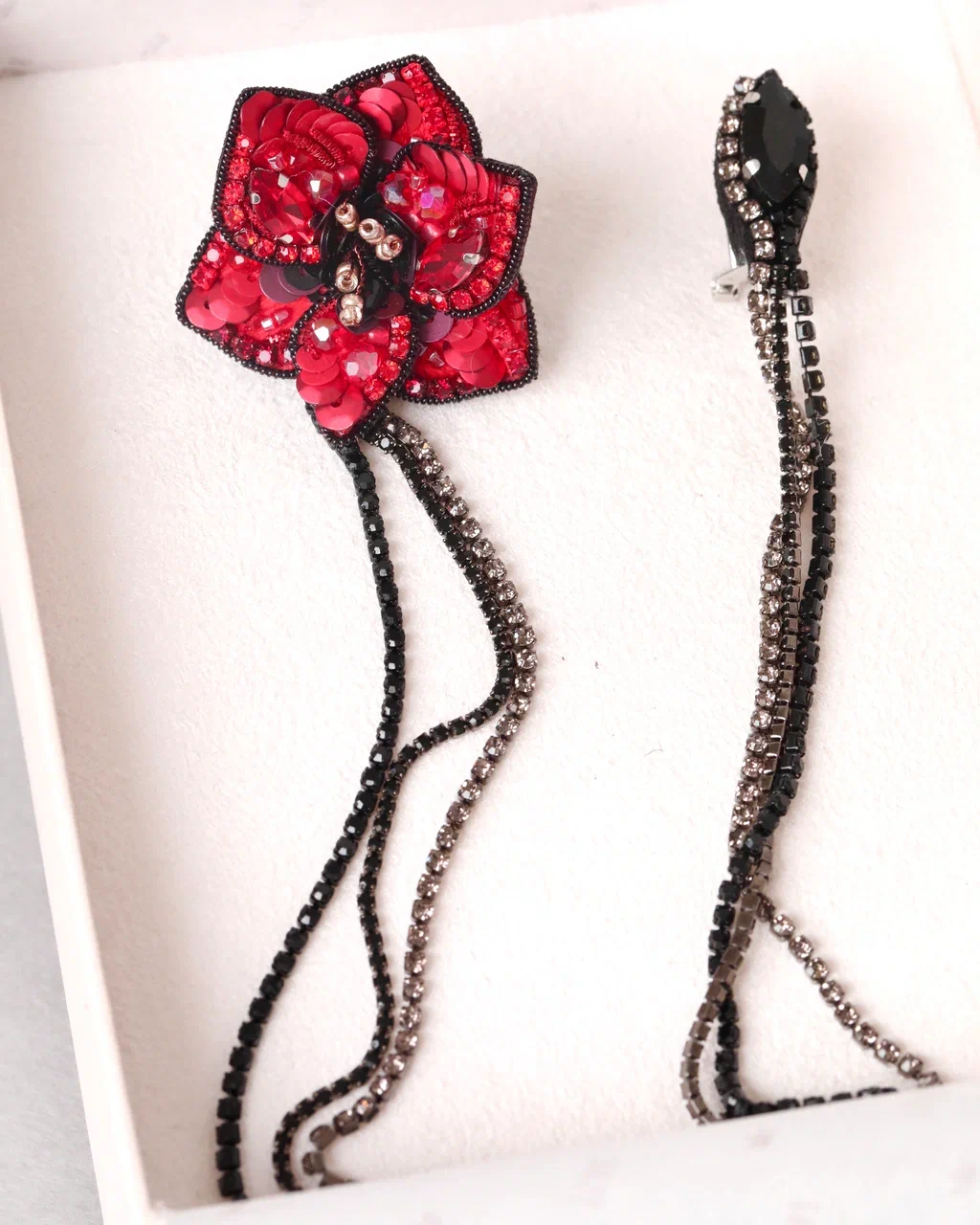 Каждый лепесток серьги тщательно проработан: лепестки словно оживают благодаря изящной форме и переходам оттенков – от глубокого бордового до ярко красного, с лёгкими акцентами золотистого сияния в середине.