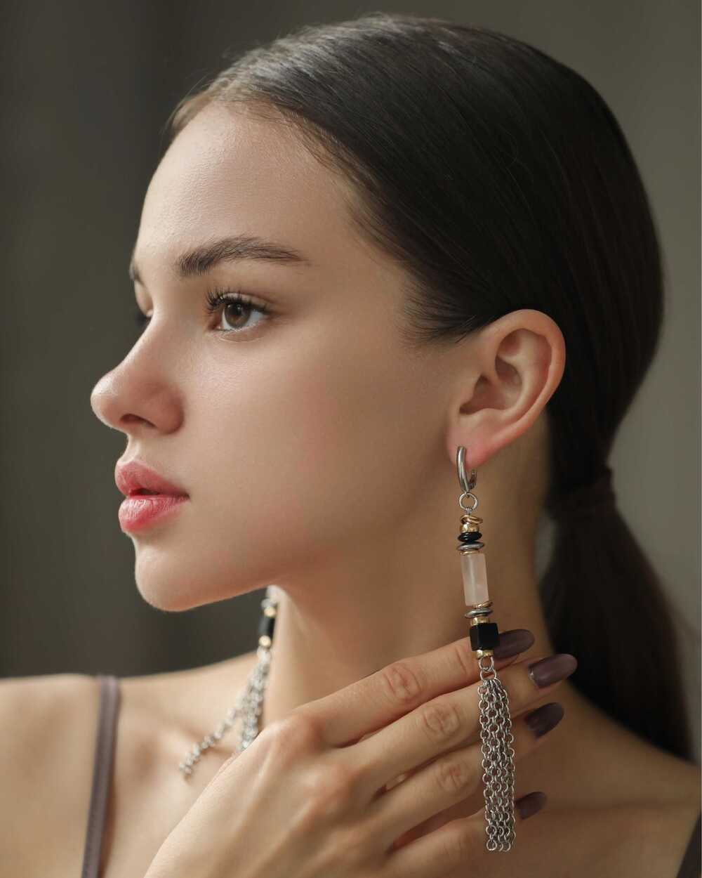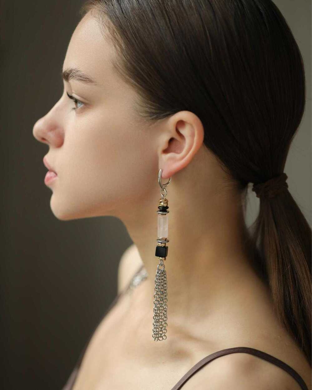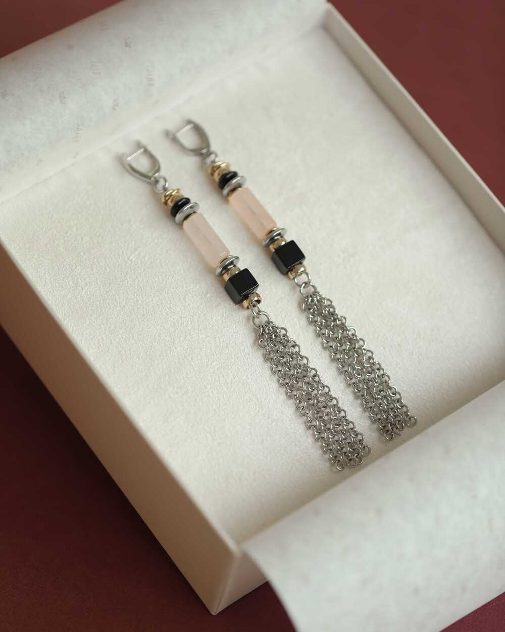 Розовый кварц, черный агат, нержавеющая сталь и латунь с покрытием