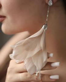 Для изготовления всего 1 пары таких красивых сережек мы используем ленту из перьев длинной 5 метров. Это кажется невероятным, но это правда. Потому что из этих 5 метров перьев мы выбираем только лучшие перья. В готовом изделии вы видите гармонию которая достигается именно таким ювелирным подбором составных частей. Перья должны быть подобраны так чтобы они подходили друг другу по размеру, по изгибу, по цвету и объему.