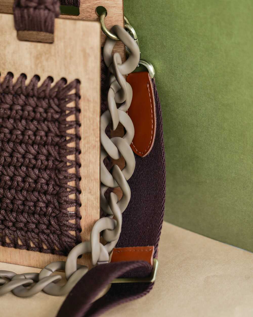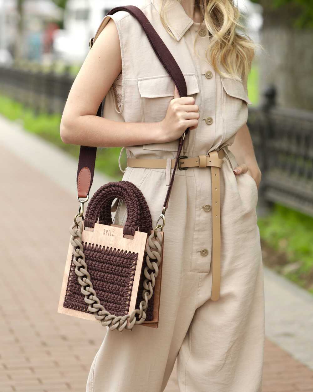 Деревянная основа пропитана эко-маслом. Это защищает сумочку и сохраняет эстетику натурального дерева.
