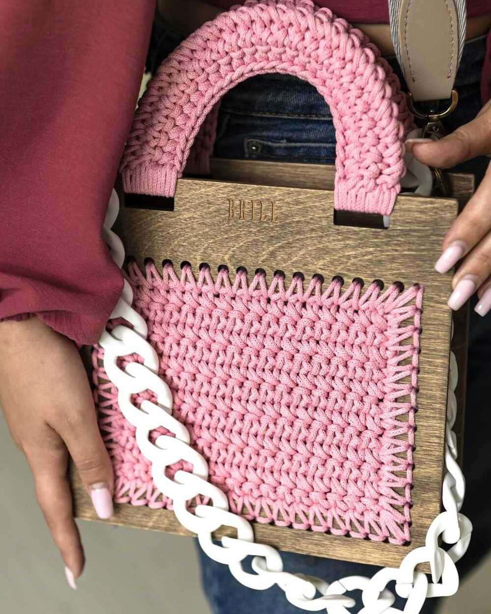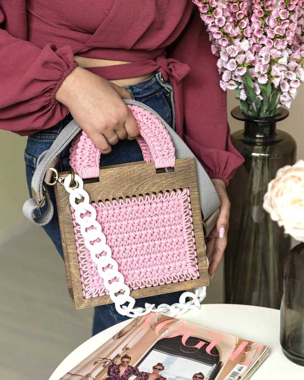Деревянная основа пропитана эко-маслом. Это защищает сумочку и сохраняет эстетику натурального дерева.