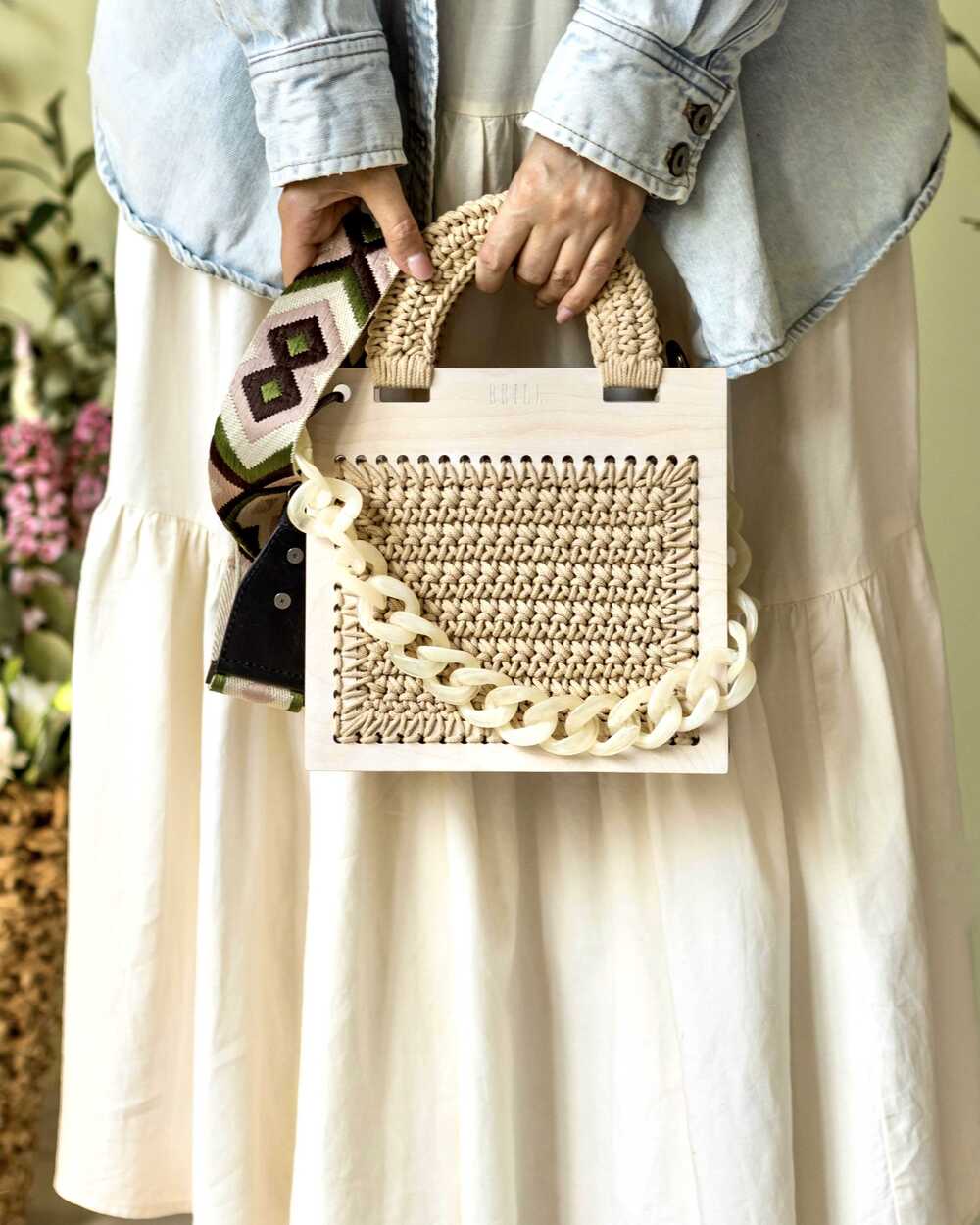 Плетеные элементы выполнены вручную из хлопковой пряжи.