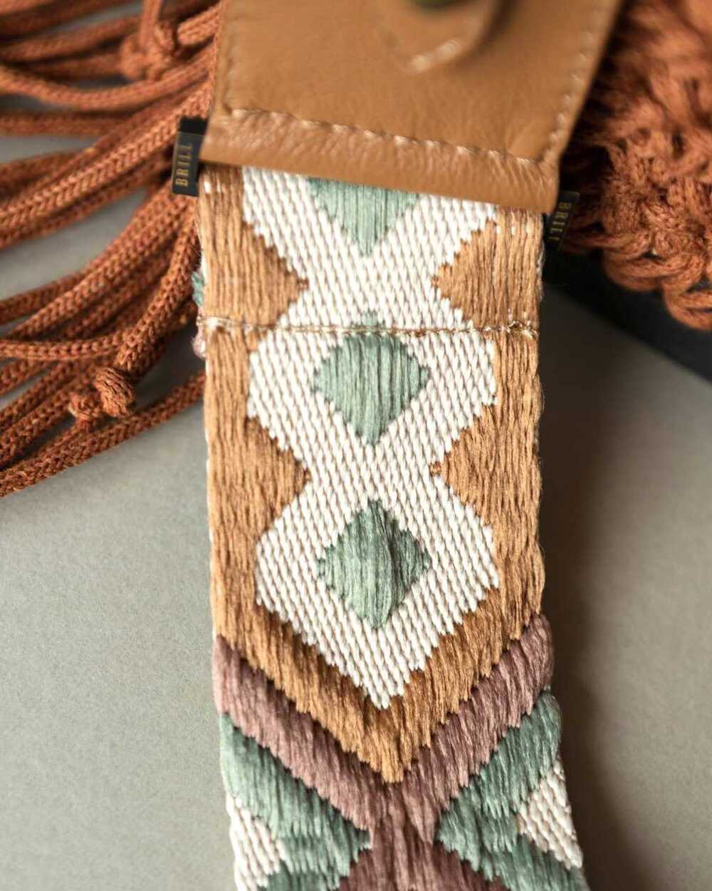 Длинный ремень сумки выполнен из гладкой ременной стропы с элементами из натуральной кожи для прочности и комфорта. Он регулируется по длине.