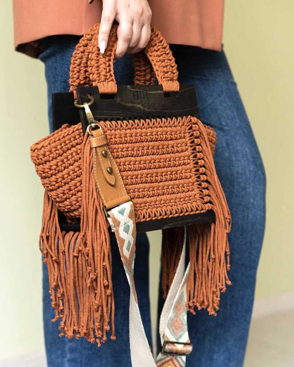 Деревянная основа пропитана эко-маслом. Это защищает сумочку и сохраняет эстетику натурального дерева.