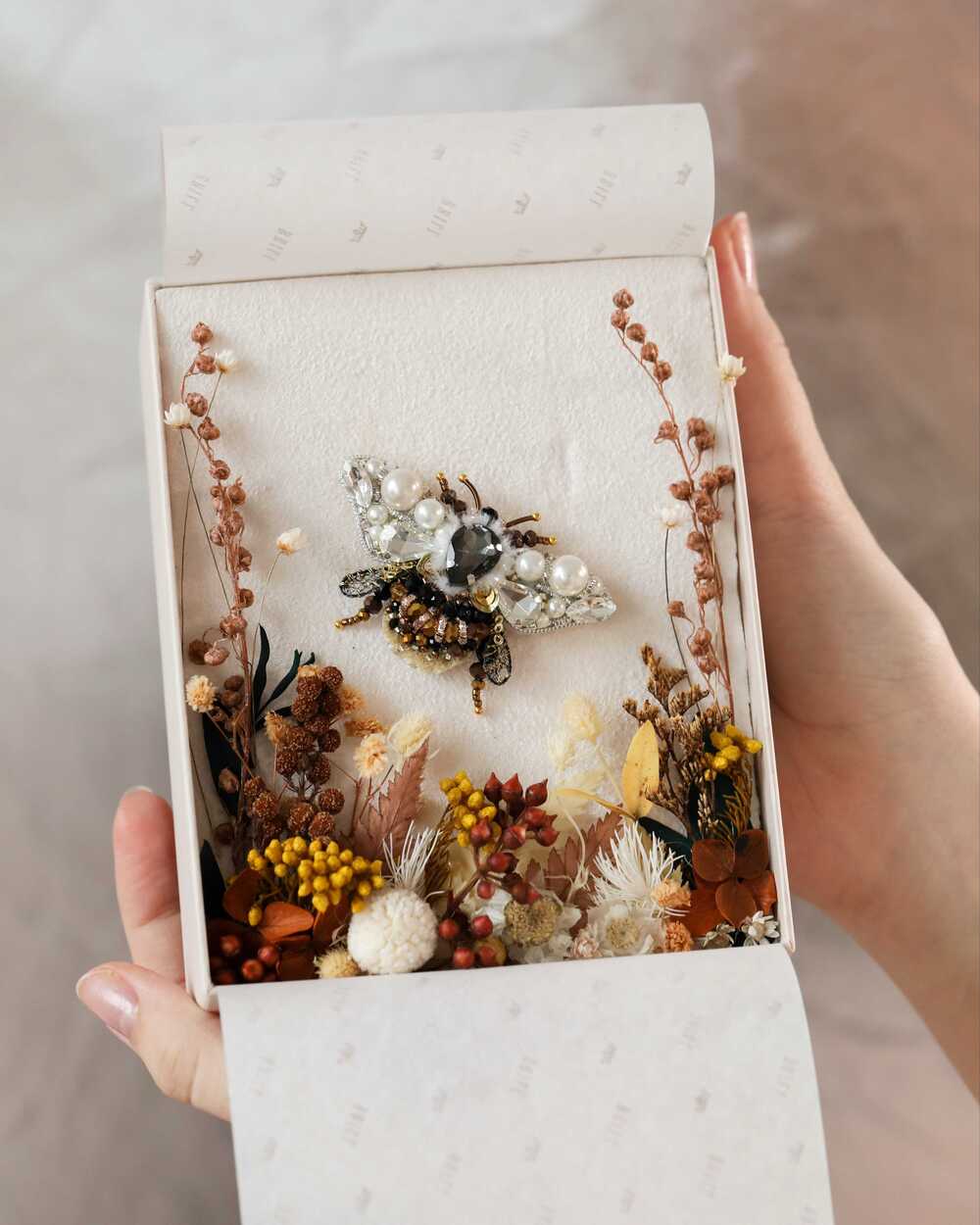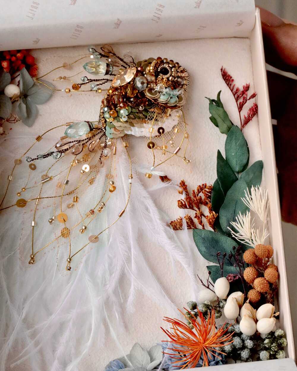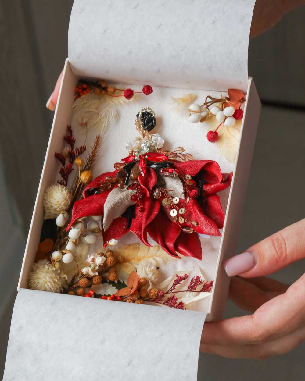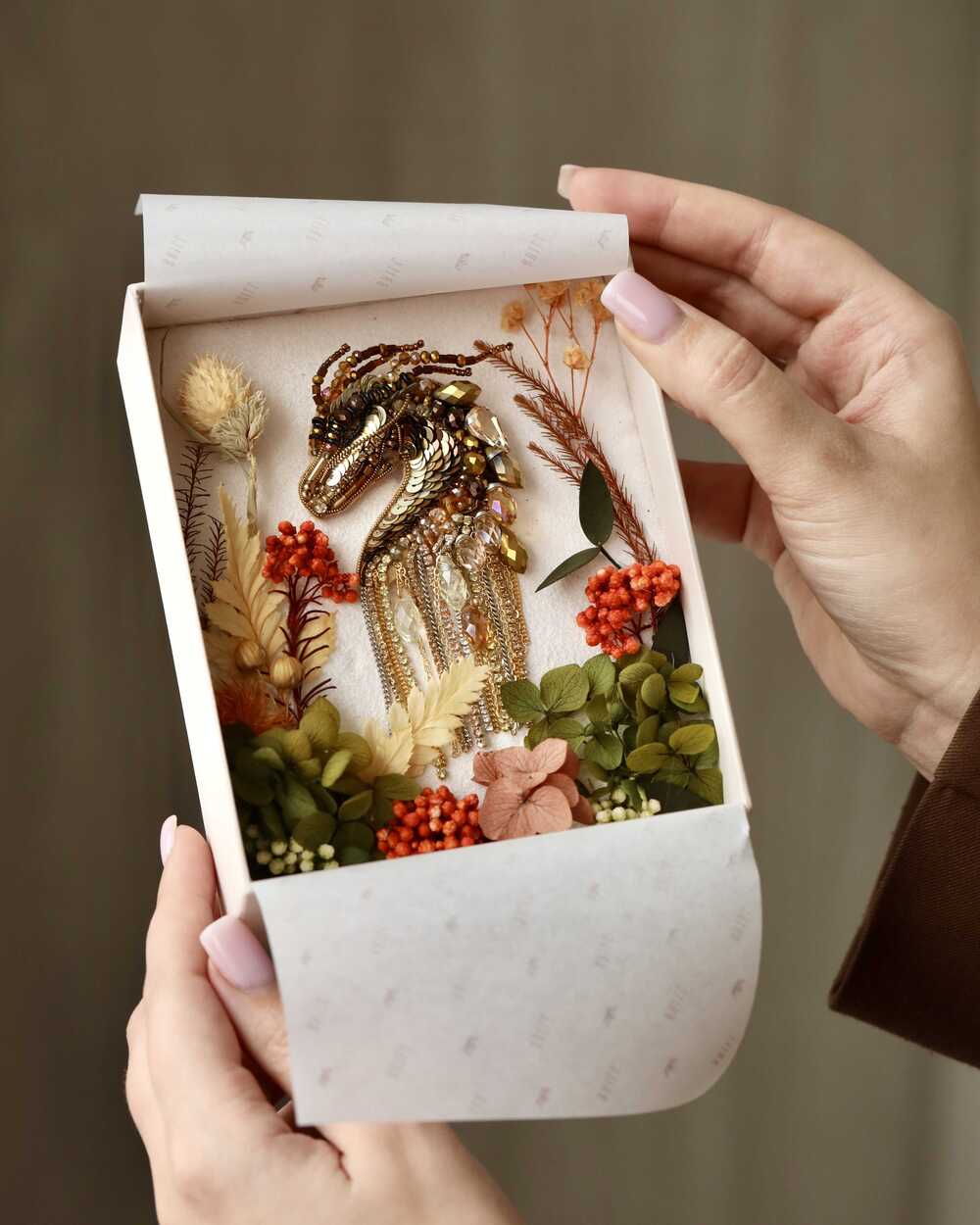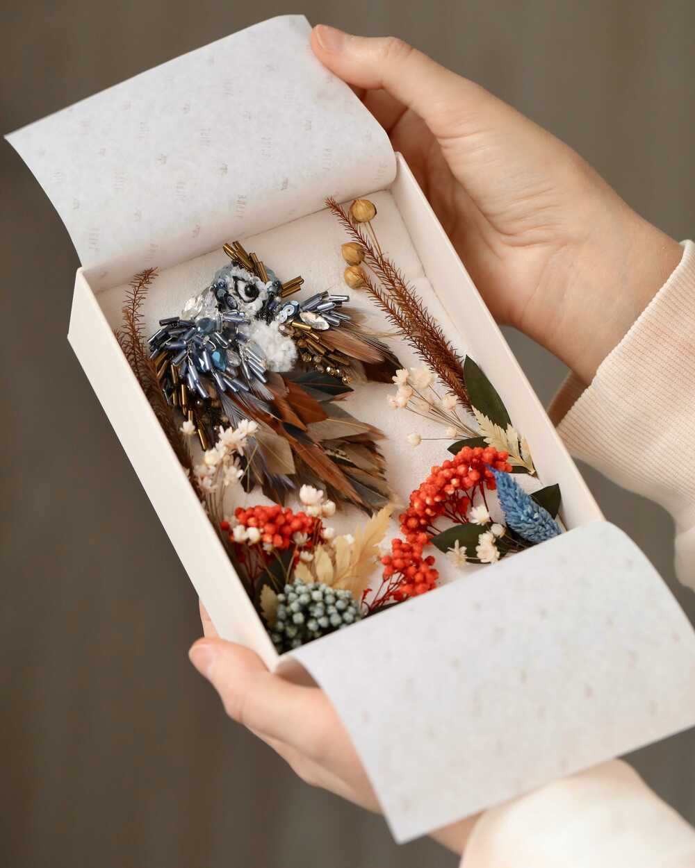 Премиальная подарочная коробка с декоративным авторским флористическим оформлением ручной работы.