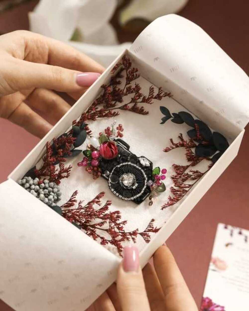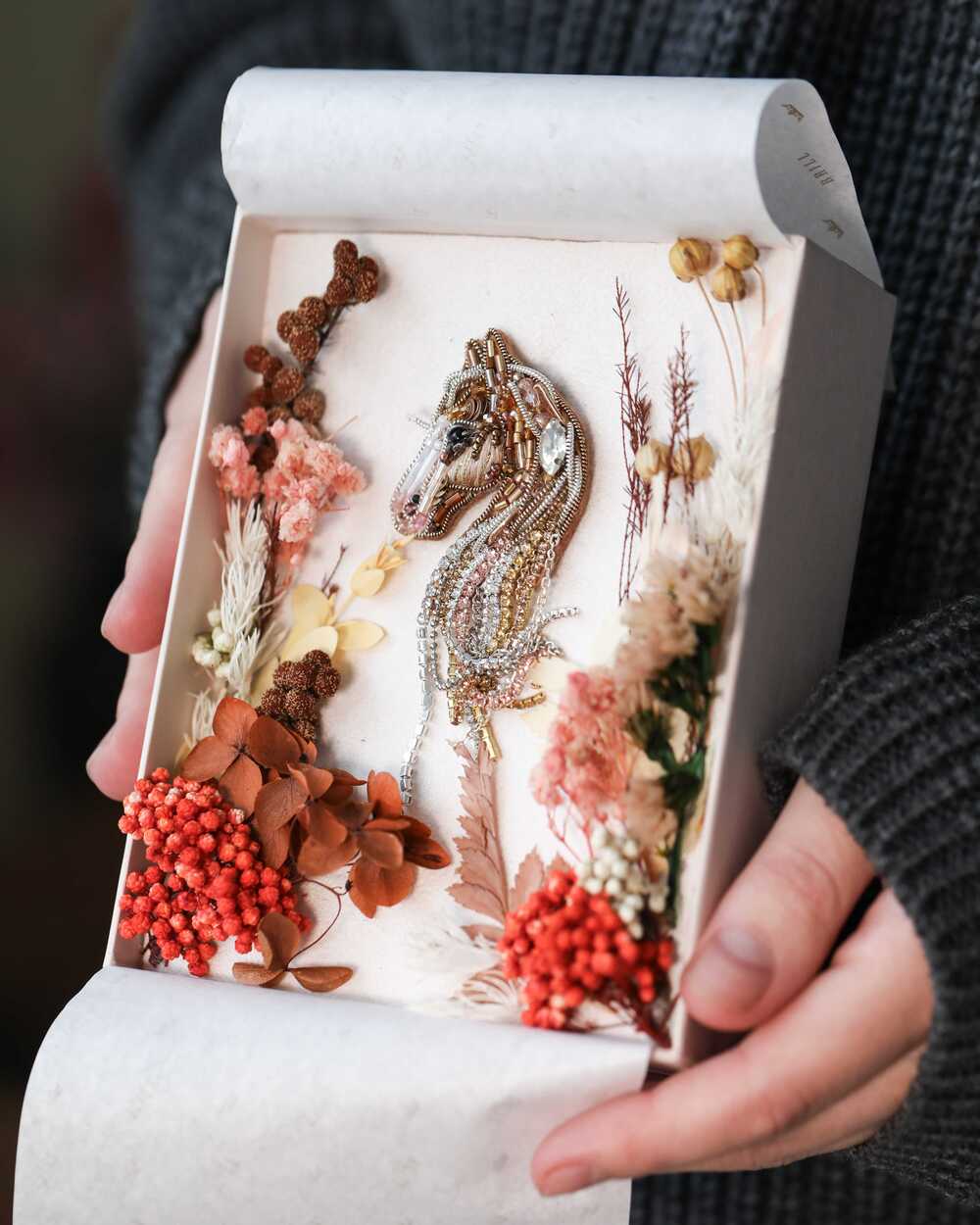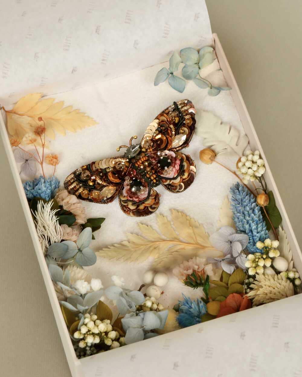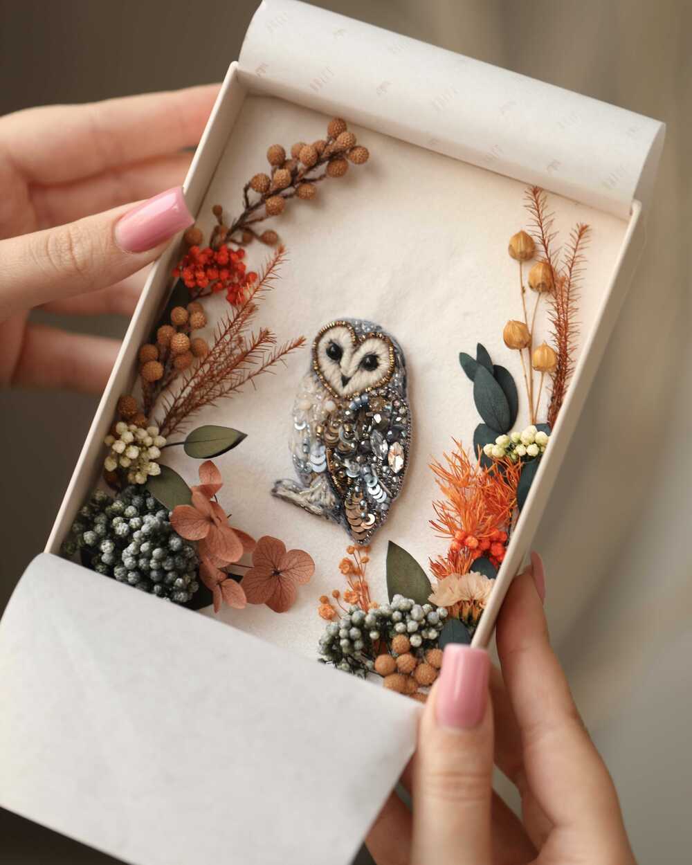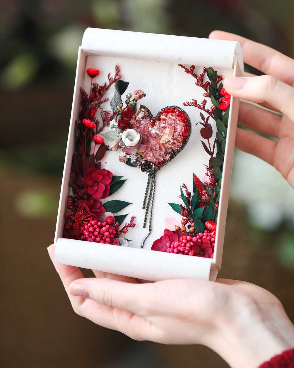 Премиальная подарочная коробка с декоративным авторским флористическим оформлением ручной работы.