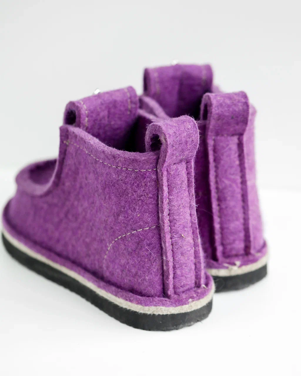 ВАЛЕШИ®️ подбираются в соответствии с вашим размером. При подборе учитывайте следующее: обувь не "садится" при носке, а напротив она немного вытягивается и "формируется" по ноге. Поэтому обувь при покупке/подборе должна сидеть плотно. В процессе эксплуатации она увеличится примерно на полразмера. Любители просторной обуви и дополнительных носок могут выбирать валеши в размер. Чтобы ВАЛЕШИ®️ плотно сидели на ноге можно выбирать их на размер меньше. Верх данной обуви выполнен из натурального грубошерстного войлока толщиной 6-7 мм. Суммарная толщина войлока по стопе вместе со стелькой составляет 14 мм. Дополнительную теплоизоляцию обеспечивает подошва из вспененного материала – ЭВА. Крепление подошвы осуществляется рантопрошивным методом. Высота ВАЛЕШ®️ - 15 см. Эта обувь отлично подходит для прогулки на открытом воздухе при пониженной температуре.