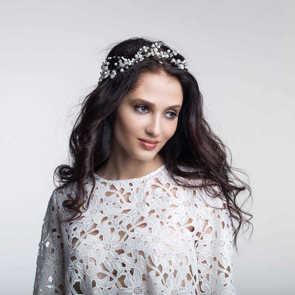 Хрустально-жемчужный венок BRILL "ВИОЛА" подойдет к нежному свадебному образу или к легкому летнему платью.