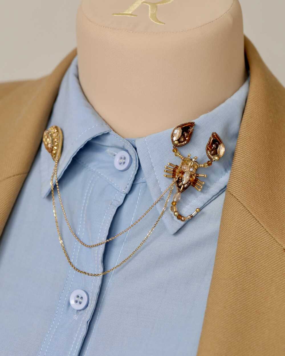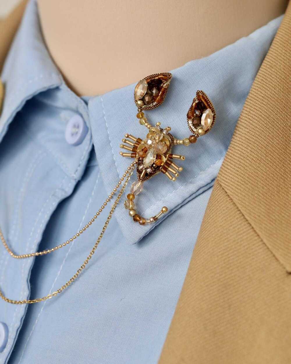 Зажим на воротник "Скорпион" — это уникальное украшение ручной работы, созданное для тех, кто ценит индивидуальность и стиль. Этот удивительный аксессуар выполнен с вниманием к деталям, сочетая в себе элегантность и оригинальность.